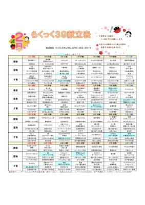 2026年2月の献立表~らくっく39~